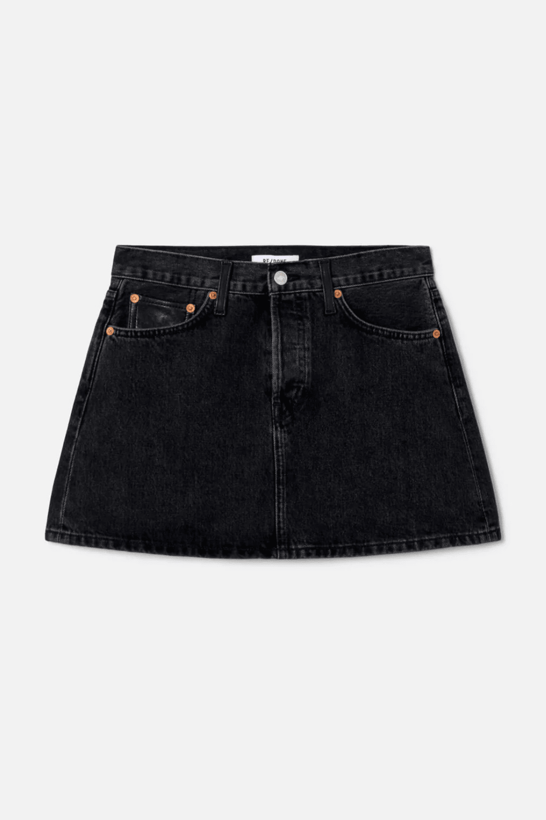 RE/DONE | Aline Classic Skirt - Black to Black Leather
