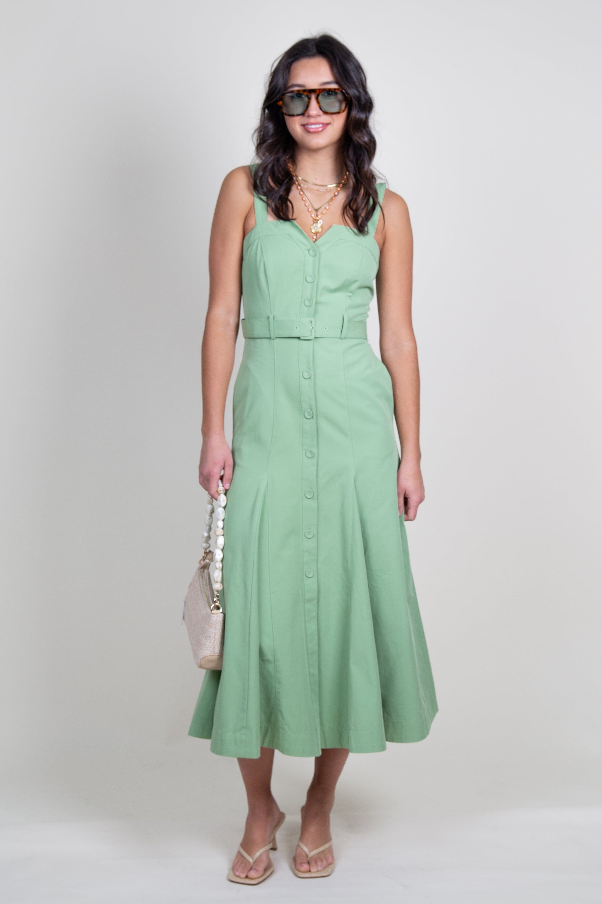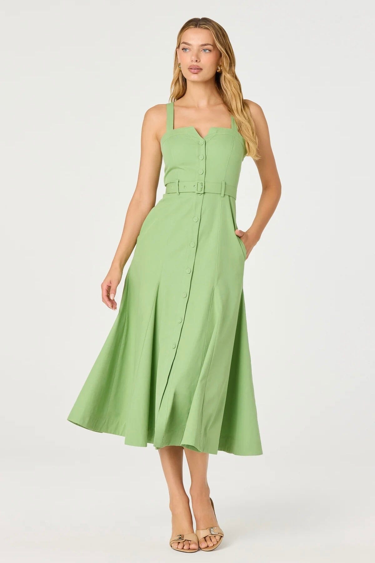 ASTR | McKinley Button-Front Midi Dress - Avocado