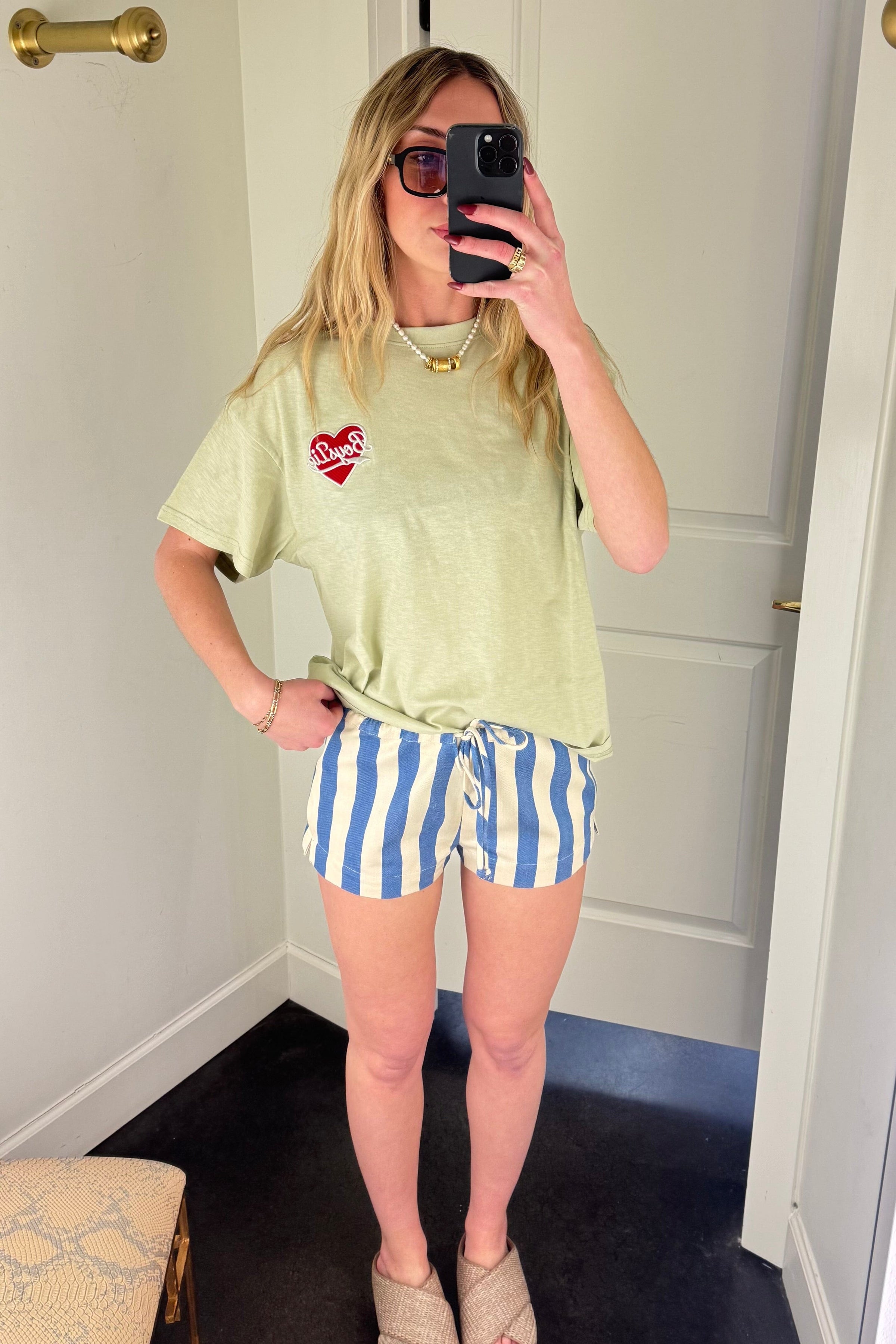 BY TOGETHER | Islay Striped Shorts - Natural Blue