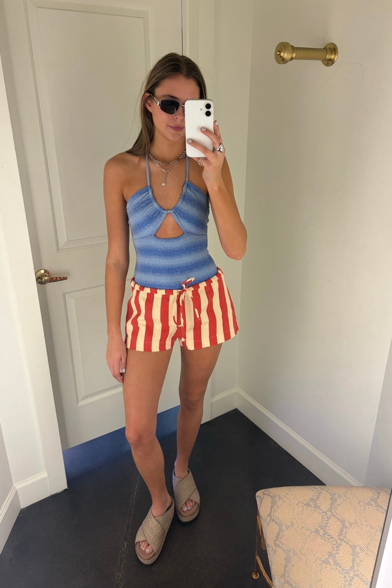BY TOGETHER | Islay Striped Shorts - Natural Red